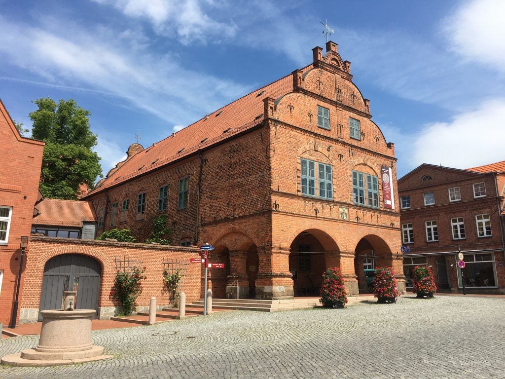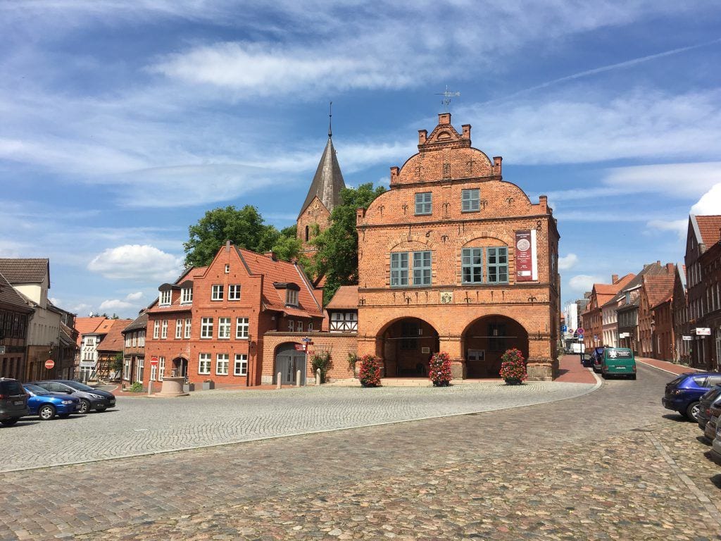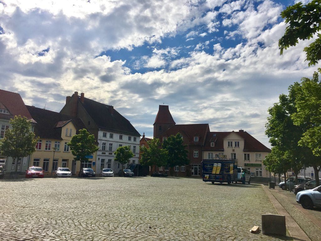 Weiter geht der Weg in Richtung Roggendorf, um dann ein paar Kilometer parallel der Bundesstraße bis nach Gadebusch zu verlaufen. Dort lohnt es sich bei einer Rast die Altstadt mit dem Marktplatz und dem alten Rathaus zu besichtigen. Ich hatte dafür perfektes Wetter, wie die Fotos zeigen.