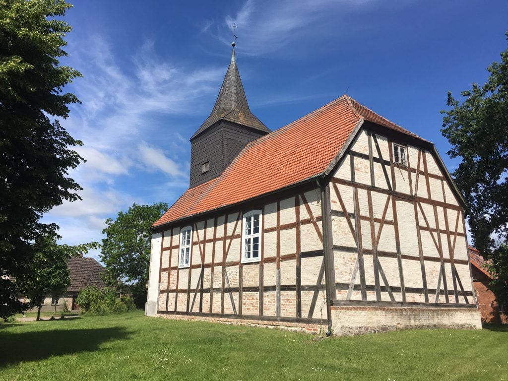 Man folgt dem Radweg neben der Straße bis nach Fürstensee, wo man ein Auge auf die kleine Fachwerkkirche werfen sollte – sehr sehenswert! Fürstensee liegt direkt am „Großen Fürstenseeer See„, der wiederum im Müritz Nationalpark liegt. Und hier wird´s jetzt schön!