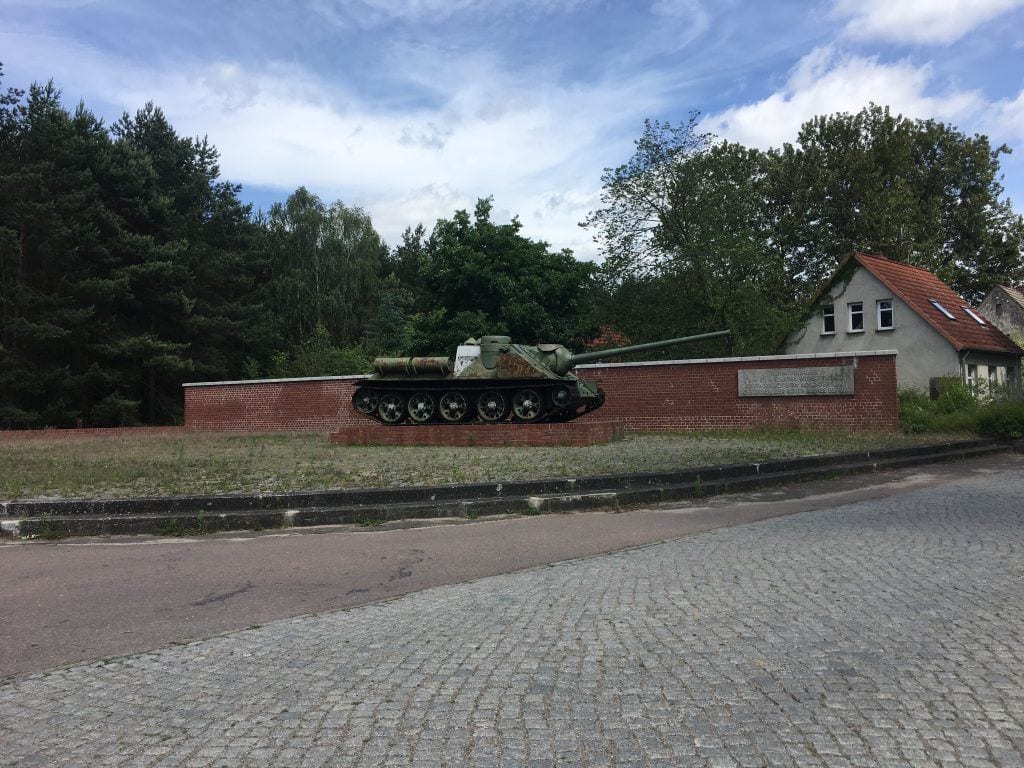 Hier kommt man auf der „Himmelpforter Landstraße“ an einem alten russischen Panzer vorbei, der an die Befreiung von den Nazis 1945 erinnert. Über diese Straße geht es später auch weiter in Richtung Zehdenick (hier nach links), vorher ist für eine Rast ein Besuch der Altstadt von Fürstenberg sehr empfehlenswert (nach rechts abbiegen).