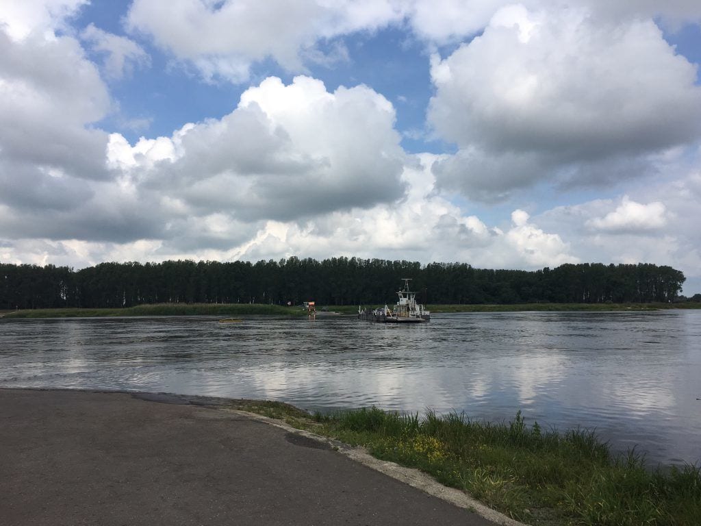 Denn eine Gierseilfähre bewegt sich lediglich durch die wechselnde Anströmung des Flusses an ihre verstellbaren Ruder von Ufer zu Ufer. Gleichzeitig ist sie an einem Fixpunkt einige hundert Meter stromaufwärts per Seil befestigt, um den sie sozusagen „horizontal pendelt“. Spannend, die fast geräuschlose und umweltschonende Überfahrt, die nur einige Minuten dauert und inkl. Fahrrad nur wenige Euro kostet!