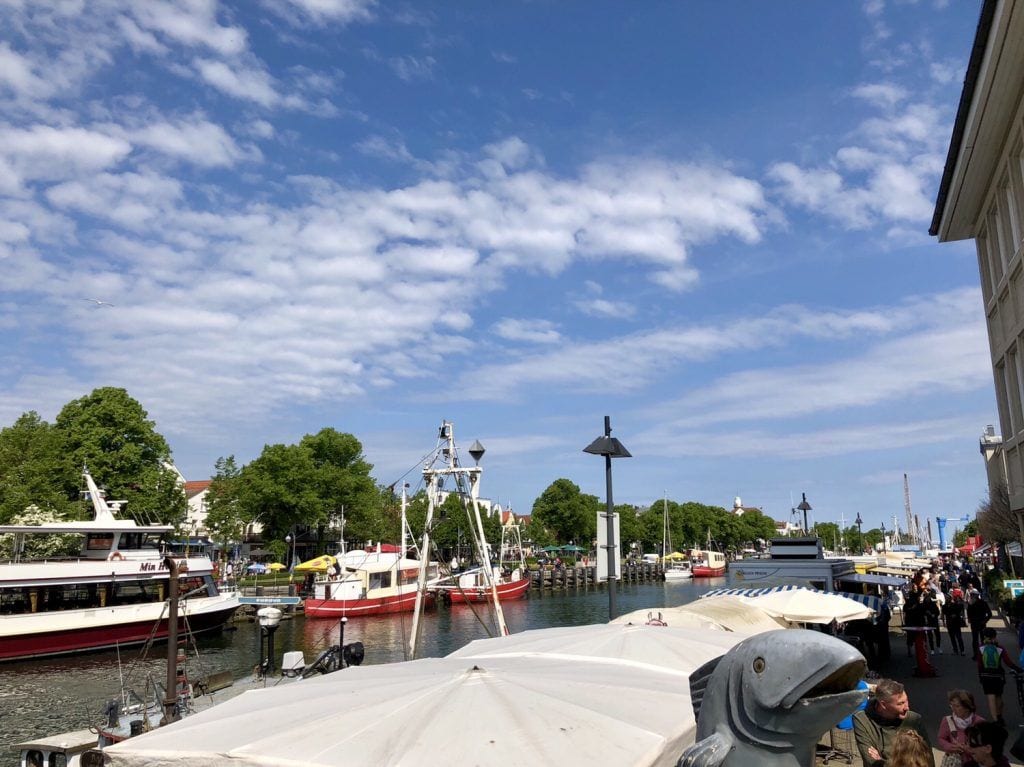 Zunächst gilt es die Warnow nach Osten zu überqueren, wozu man am besten die Hafenfähre benutzt. Dorthin gelangt man per Unterführung am Bahnhof oder über einen kleinen Umweg entlang des „Alten Stroms“, bei dem man gleich noch ein paar leckere, kutterfrische Fischbrötchen einsacken kann!