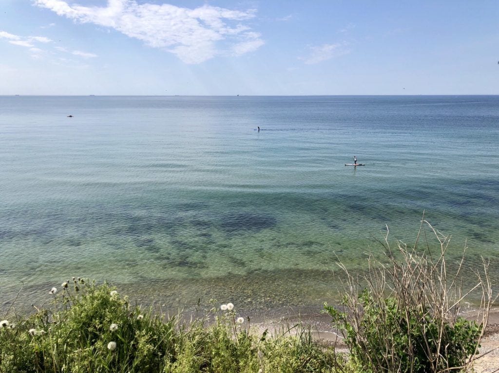 Damit ist die Halbinsel Fischland Darß und beim Permin, kurz vor Wustrow, auch gleich seine schmalste Stelle erreicht. Zur Linken hat man nun die Ostsee, rechts liegt der Saaler Bodden.