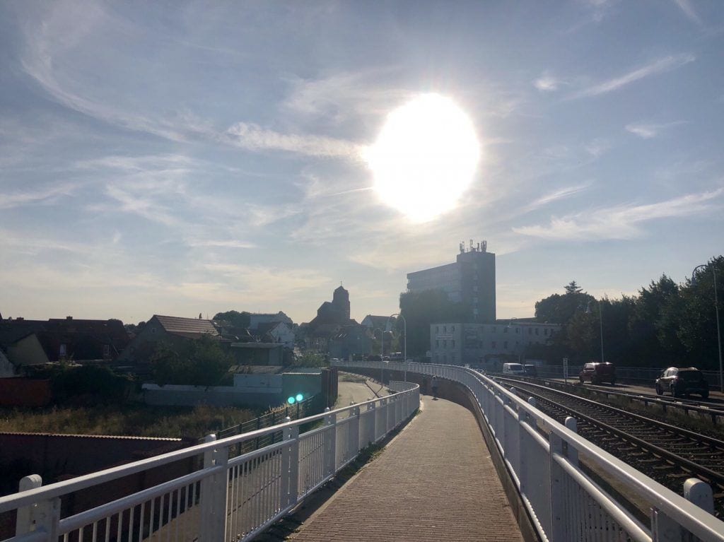 Wenige Minuten später, stehen wir wieder an der „Kleinen Brücke“ und dem Wolgaster Hafen. Bis zum Ausgangspunkt unserer Fahrradtour auf die Insel Usedom, dem Rathausplatz, sind es nun nur noch wenige Meter.