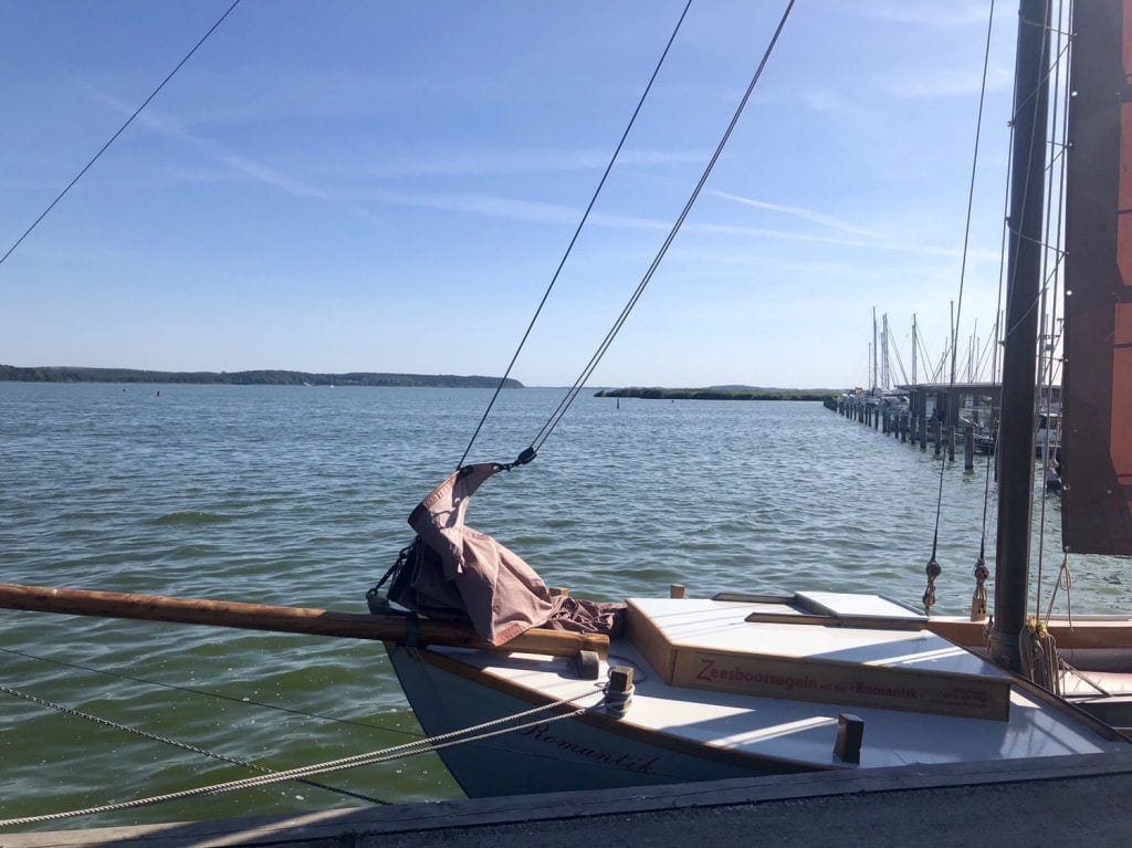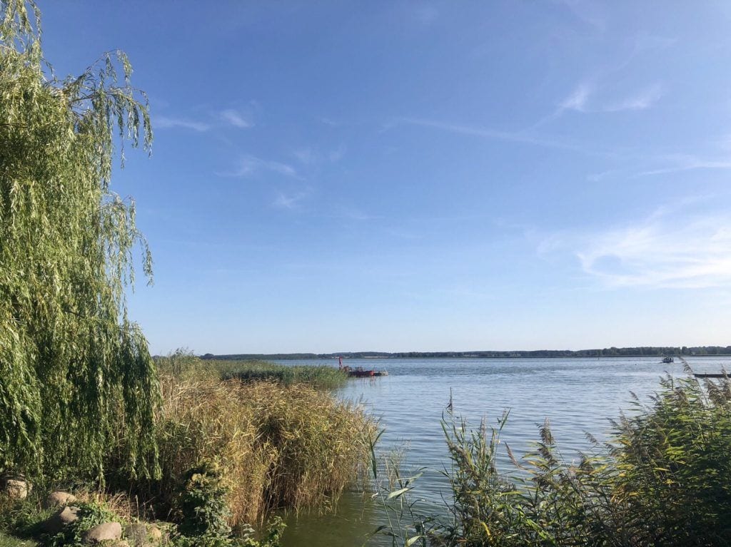 Wenig später erreichen wir das Örtchen Ziemitz. Das liegt direkt am Peenestrom und besitzt einen idyllischen kleinen Hafen mit einem tollen Panoramablick. Dazu radeln wir bis zur Hauptstraße und biegen nach rechts ab. Am Hafen bietet sich ein weiteres Päuschen an, Bänke stehen am Ufer der Peene bereit.