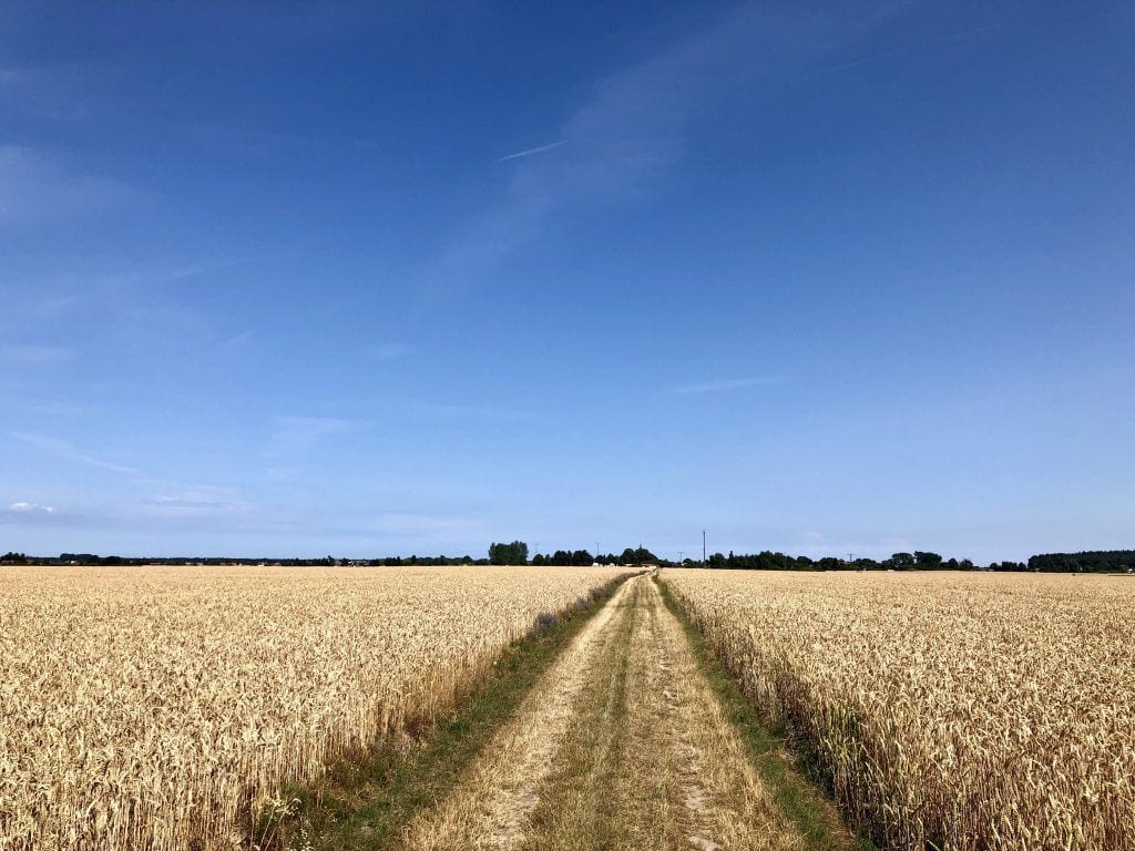 Wir biegen nach Osten ab und lassen das Dörfchen hinter uns. Über Felder und durch kleine Wälder geht es nun zurück nach Kröslin, dem Ausgangspunkt unserer Rundwanderung. Schon von Weitem sehen wir dessen Kirchturmspitze aufragen und wissen wieder einmal mehr die Schönheit Vorpommerns und der Region Usedom zu schätzen!