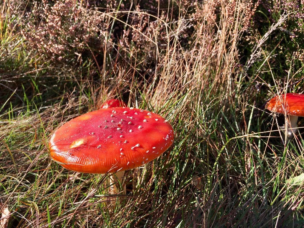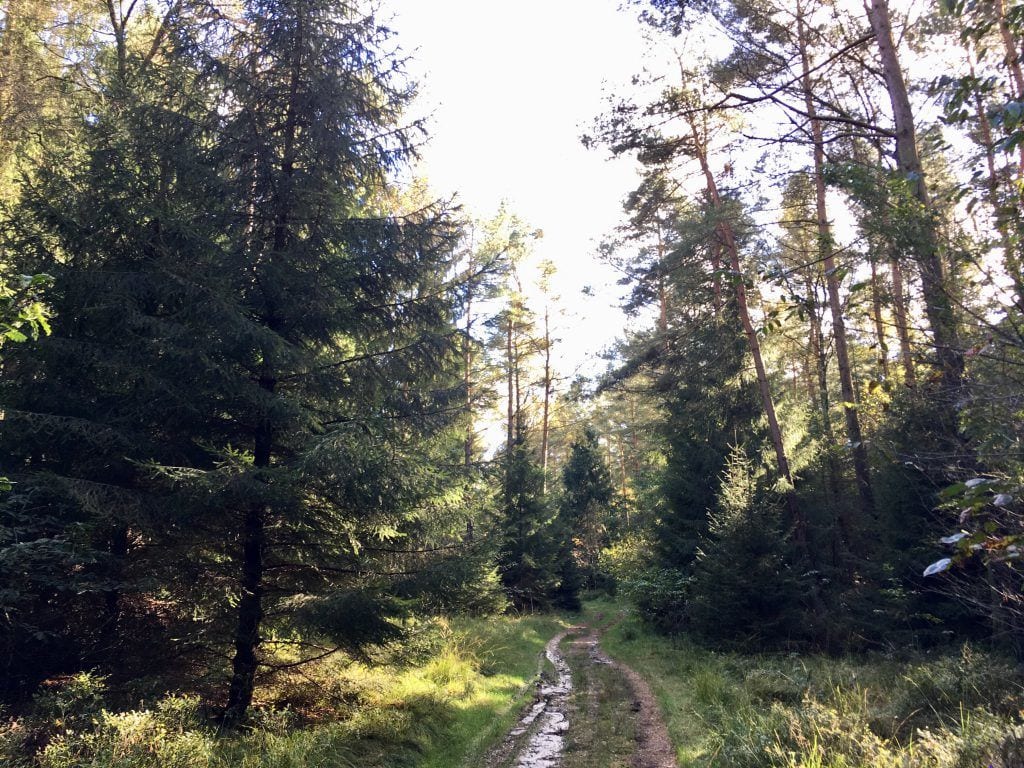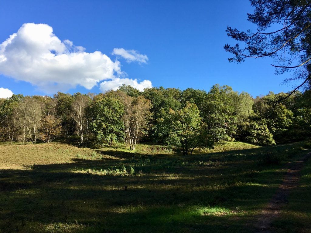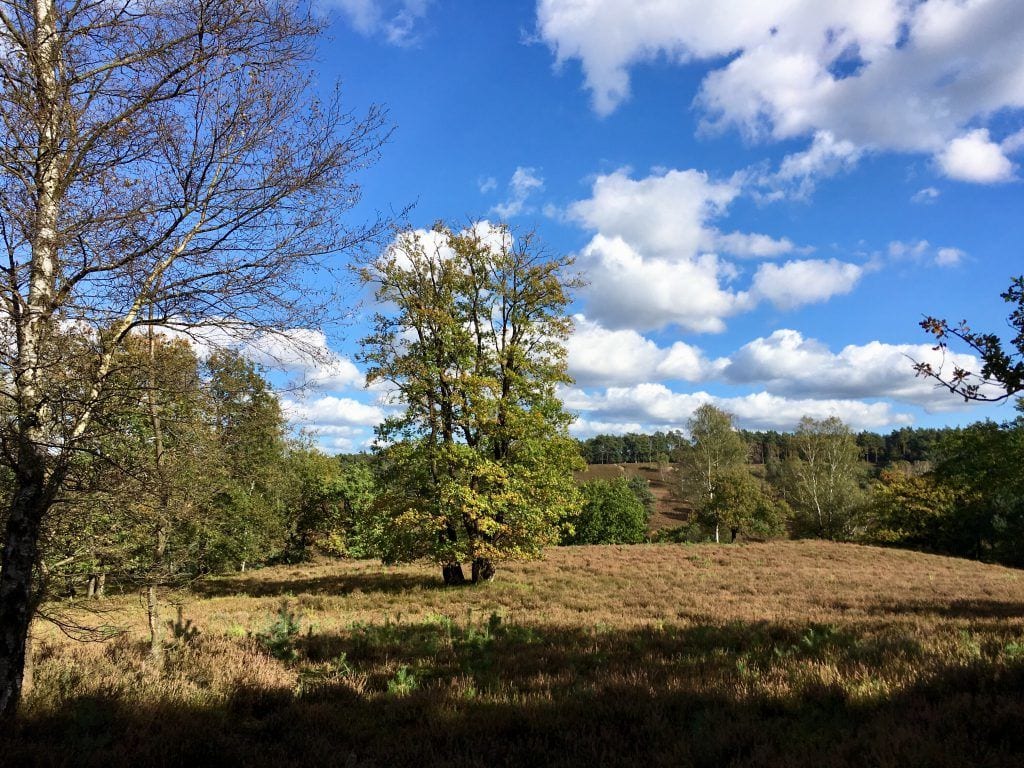 Von nun an folgt man dem Weg durch die Heidelandschaft, der sich zunehmend über Hügel und durch kleine bewaldete Täler windet. Dabei ist er aber wunderbar zu gehen. Er ist gesäumt von Birken und Heidekraut, das im Sommer violett erblüht. An schönen Tagen nutzen zahlreiche Spaziergänger diese herrliche Gegend zum Flanieren. Je südlicher man vordringt, desto weniger werden es dann aber.
