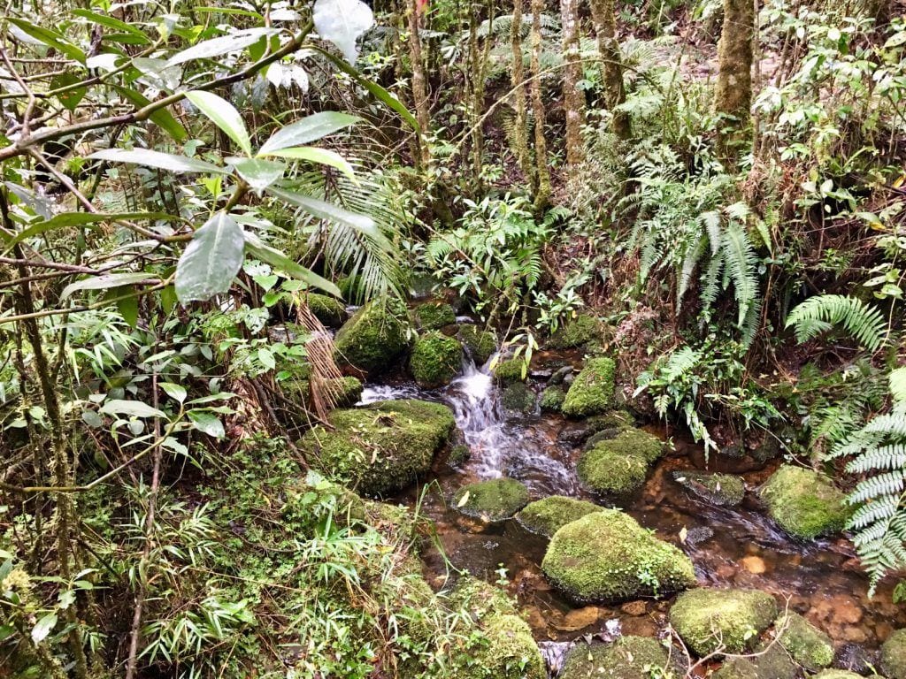 Es geht dabei anfangs durch einen kühlenden, feuchten Nebelwald und vorbei an kleinen, rauschenden Bächen, was irgendwie verwunschen wirkt. Der Weg steigt gemächlich, aber stetig an, schließlich sind insgesamt knapp 800 Höhenmeter zu überwinden.