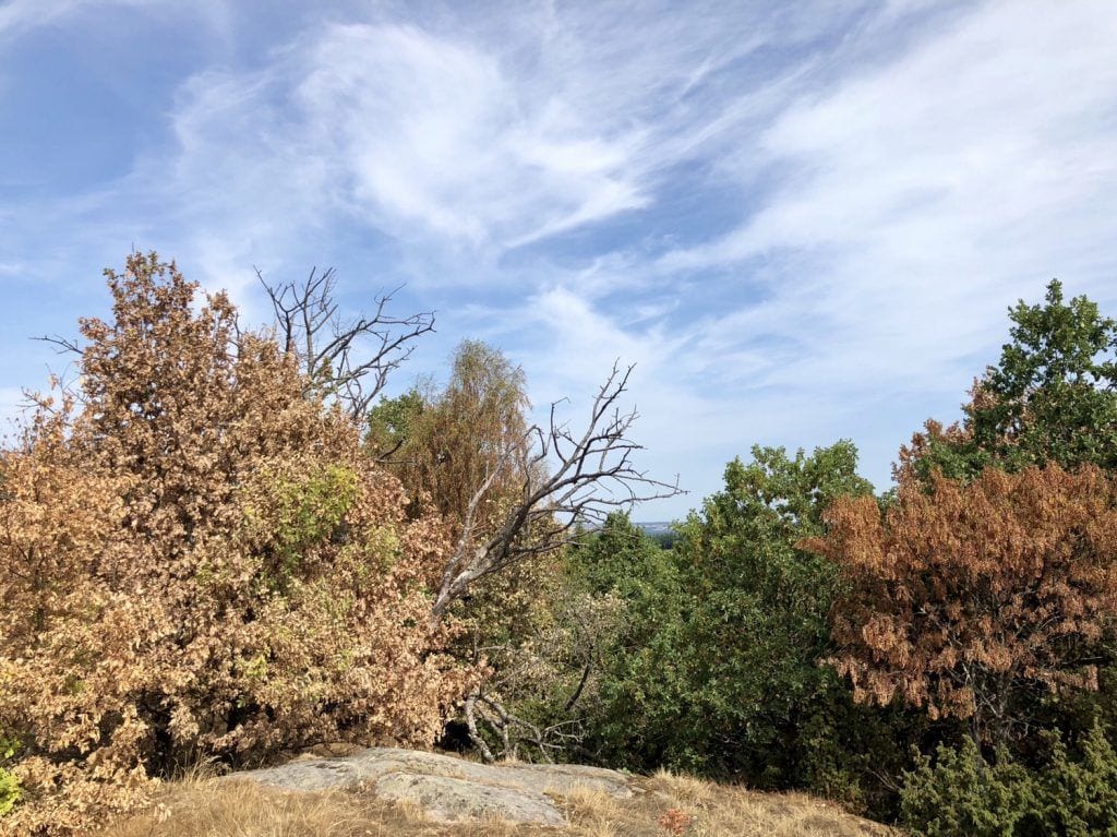 Wir kamen vorbei an riesigen Ameisenhaufen, dicken, alten Bäumen und überquerten die Hügel „Romeleklint“ und „Väderkullen“ – 175 und 165 m hoch. Mit Gepäck zählen die dann schon als Berg. Die Aussicht über die südschwedische Landschaft entschädigte für die Mühen.