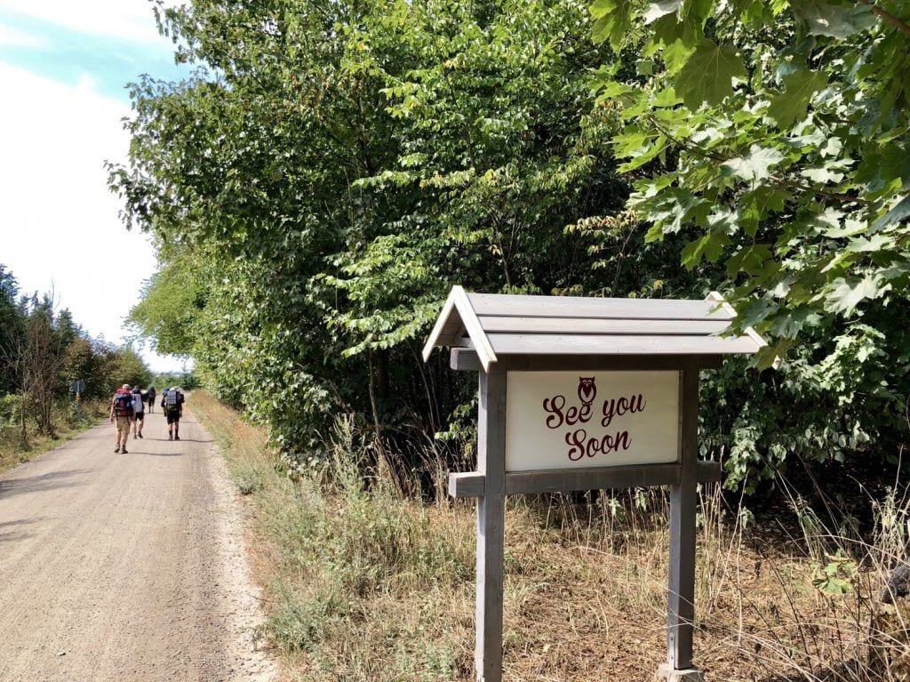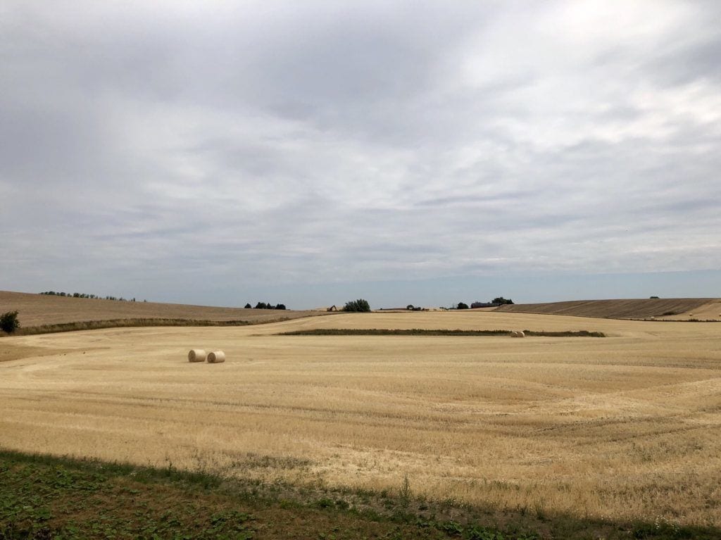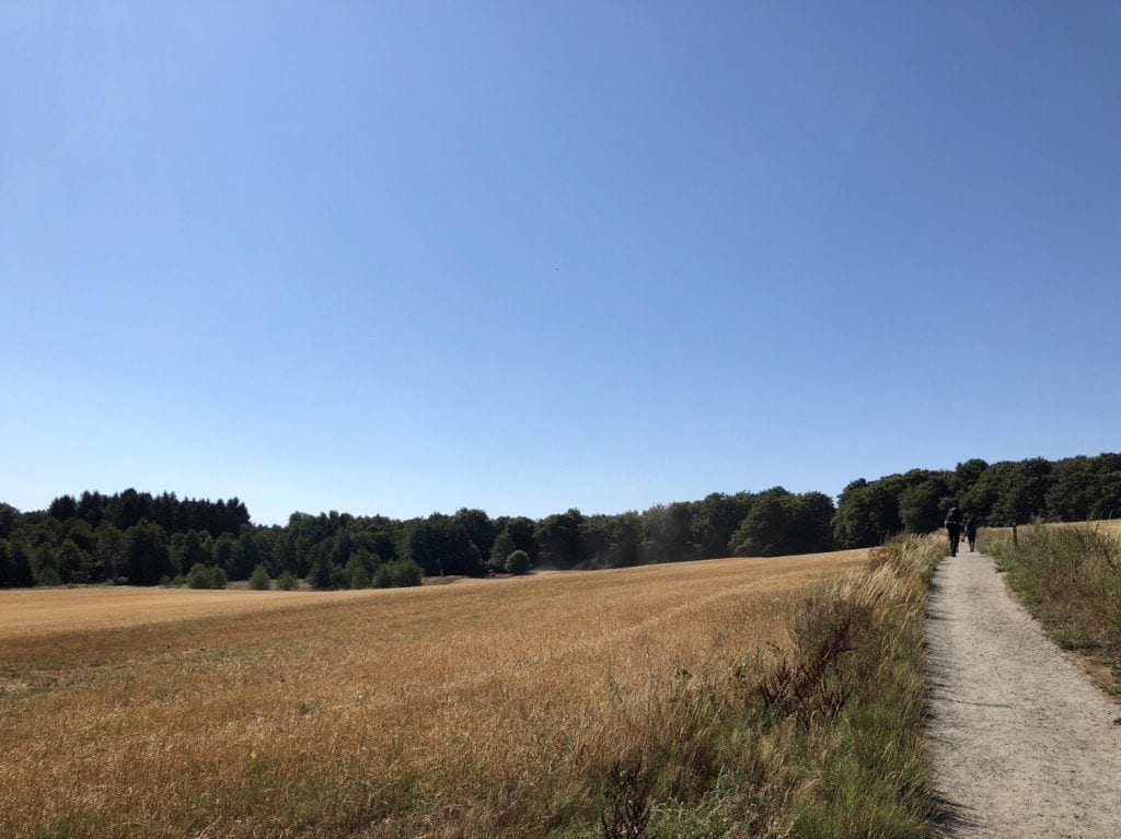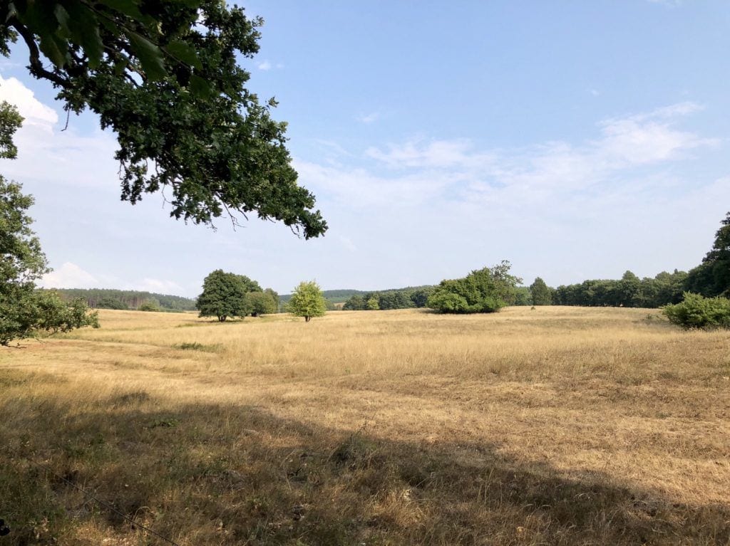 Die Hitze der vergangenen Monate hatte die Felder und Wiesen vielerorts in eine gelb-beige Steppe verwandelt, die Natur dürstete nach Feuchtigkeit. Auch uns war warm. Der schwere Rucksack machte sich nach der Hälfte der Tagesstrecke allmählich bemerkbar.