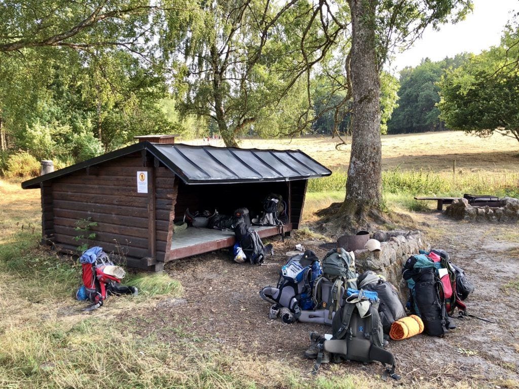 Die Lagerplätze am Skåneleden sind meist recht spartanisch ausgestattet. Oft gibt es eine kleine Holzhütte als Wetterunterschlupf, eine Feuerstelle, ein Plumpsklo und eine Mülltonne. Die Plätze liegen meist im Wald oder am Waldrand und auf Sandboden (meist kaum Gras), so dass man noch den natürlichen Schutz der Bäume hat. Wenn es gut läuft, gibt es noch ein paar einfache Bänke und Tische aus Baumstämmen und sogar einen Wasserhahn oder Brunnen, aus dem man trinkbares Wasser schöpfen kann.