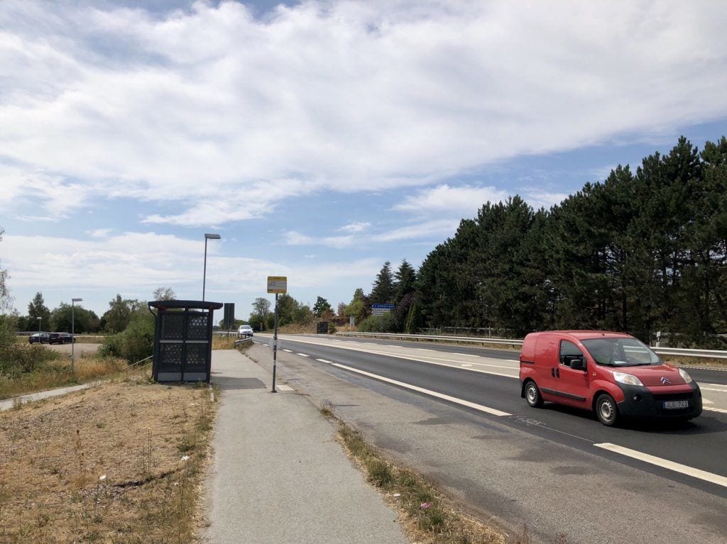 Nach knapp 3 Stunden Wanderung war es dann vollbracht: Aus der Ferne nahm das Rauschen allmählich zu, wir stießen auf die Bundesstraße, die Zivilisätion hatte uns wieder. Zuverlässig, nur wenige Minuten später, traf der gelbe Bus des Skånetrafiken ein und wir waren ebenso glücklich wie erschöpft.