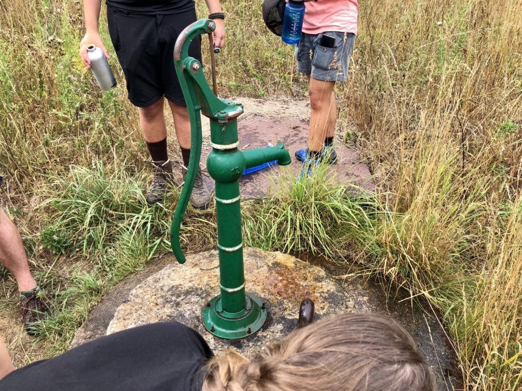 Welch ein Glück war es dann, als wir nach ca. 7 km Wanderung am Lagerplatz Sturup auf eine intakte Wasserpumpe stießen, die eiskaltes, klares Wasser ans Tageslicht beförderte. Eilig wurde das warme Seewasser gegen das kühlende Nass getauscht und wir erfrischten uns unter dem kräftigen Strahl der Pumpe. Unbeschreiblich, wie man sich über frisches Wasser erfreuen kann – und wie wertvoll das doch ist!