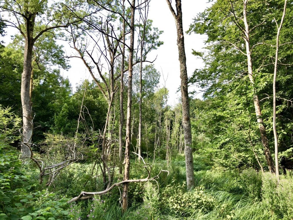 Und wir benötigten diese Erfrischung, denn bald darauf gelangten wir in ein sumpfartiges, hügeliges Feuchtgebiet westlich des Häckebergasjön-Sees, das brüllend heiß war und uns mit unzähligen Fliegen plagte. Aber oft liegt das Gute doch so nah und wer hinsah, konnte die unzähligen kleinen Energiequellen in Form von vollreifen Brombeeren am Wegesrand nicht übersehen. Ich langte jedenfalls kräftig zu, eine willkommene Stärkung.