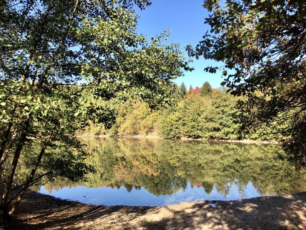 Dort geht´s durch einen schönen Laubwald westwärts, um nach einiger Zeit nordwärts einzudrehen und das kleinen Flüsschen „Bilsbek“ zu überqueren. Idyllisch ist es kurz darauf auch am kleinen Waldsee, an dessen Ufer man gut rasten kann.