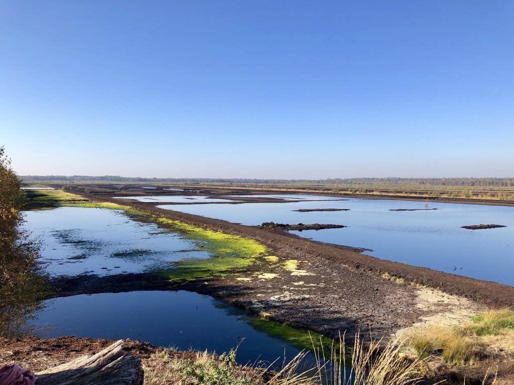 Ergebnis ist ein landschaftlich stark verändertes Moorgebiet, mit extrem tiefen Narben an seiner Oberfläche. Ein Blick von oben verdeutlicht das erschreckende Resultat! Mühsam versucht man nun, die ehemaligen Torfstiche zu „wiedervernässen“ und zu renaturieren, um den ursprünglichen Zustand wiederherzustellen.