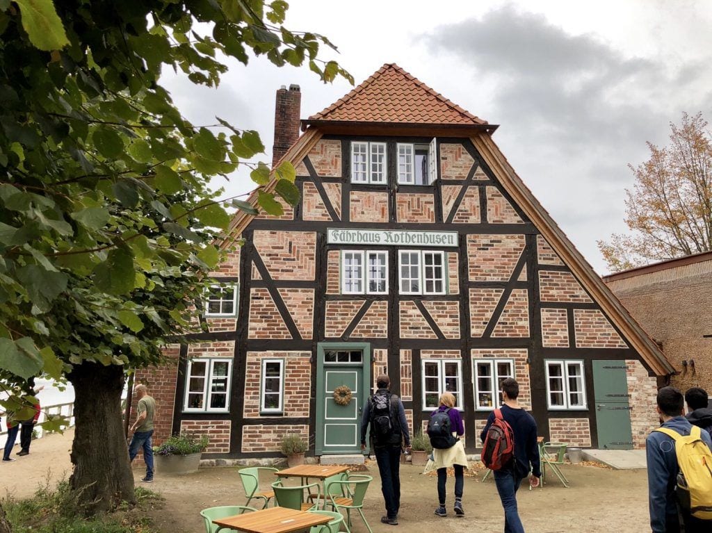 Kurz darauf erreichen wir auch das Ziel unserer Wanderung: das „Fährhaus Rothenhusen“ am Nordrand des Großen Ratzeburger Sees. Das Fährhaus liegt sehr idyllisch auf einer kleinen Insel im See und ist eigentlich eine mehr als 500 Jahre alte Zollstation der Hansestadt Lübeck, die auch über eine Befestigungsanlage gegen Übergriffe der Lauenburgischen Herzöge verfügte.