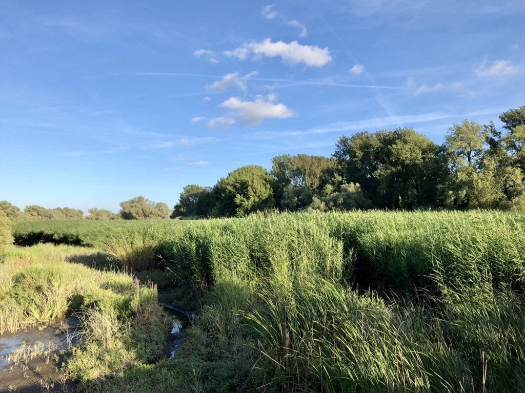 Direkt hinter dem Heuckenlock steht man wieder am hohen Elbdeich und der begehbare Teil des Naturschutzgebietes liegt hinter einem. Schön ist, hier auf den Deich zu klettern und die ganze Szene noch einmal zu überblicken und Revue passieren zu lassen! Auf diesem geht es zurück zum Ausgangspunkt oder zur Bushaltestelle „Moorwerder Hauptdeich 69“.