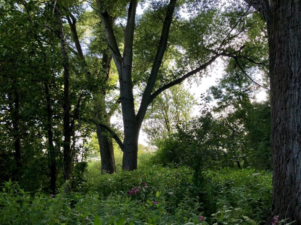 Kurz vor dem sandigen Elbufer stößt man auf riesige, etwa 50 m hohe, alte Ulmen, die ihr mächtiges Blätterdach über der urwaldartigen Szenerie ausbreiten. 2013 wurde etwas weiter westlich von hier eine mehr als 450 Jahre alte Flatterulme beim Sturm „Xaver“ gespalten und umgeworfen. Wie das gekracht haben muss? Mit Glück lassen sich hier sogar Adler oder Reiher beobachten, entsprechend ruhig sollte man sich verhalten!